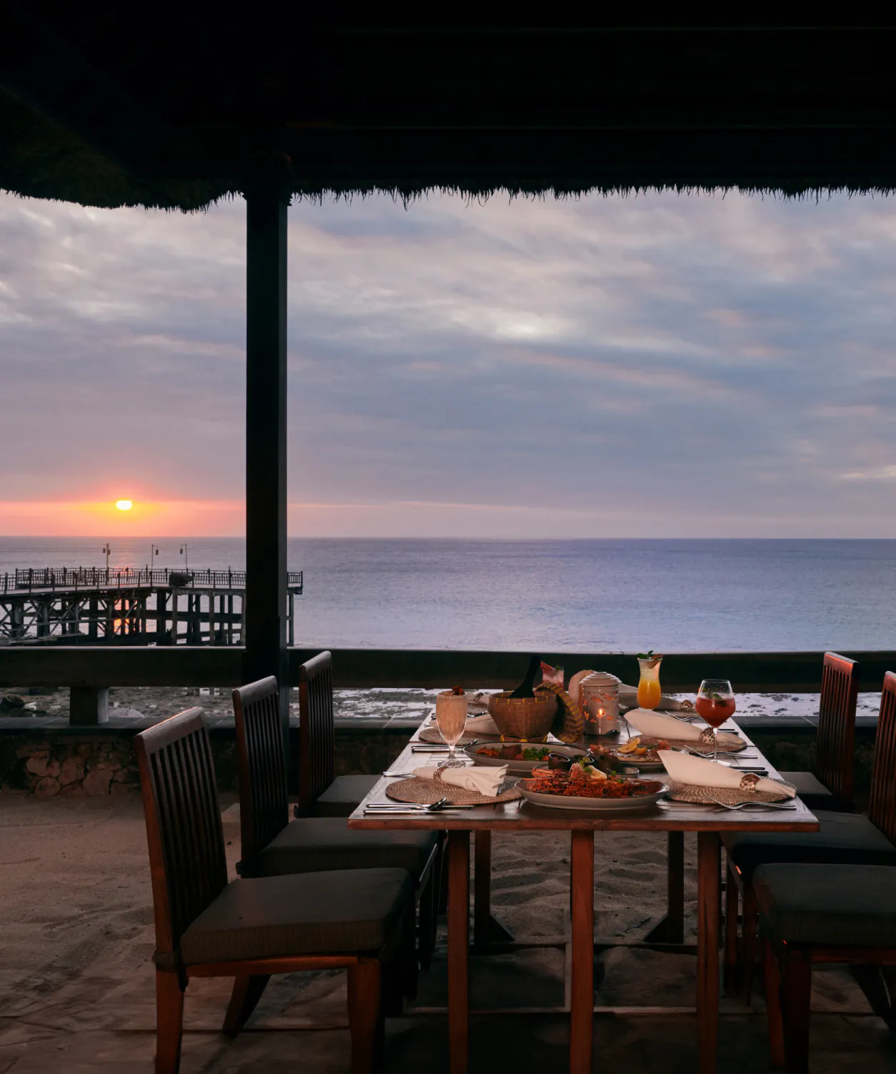 At KISIK, an ocean front dining venue, you can experience a Balinese-style seafood barbecue. Enjoy a special moment at tables set on the sandy beach, gently illuminated by the soft glow of torches.