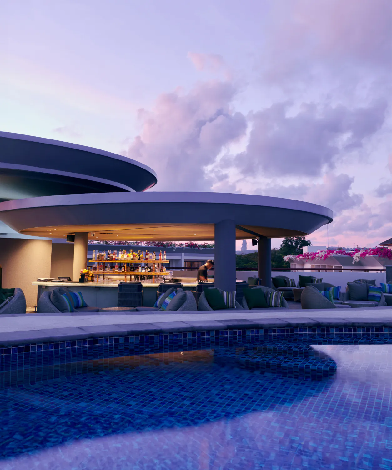 Poolside cocktails with stunning panoramic sunsets.