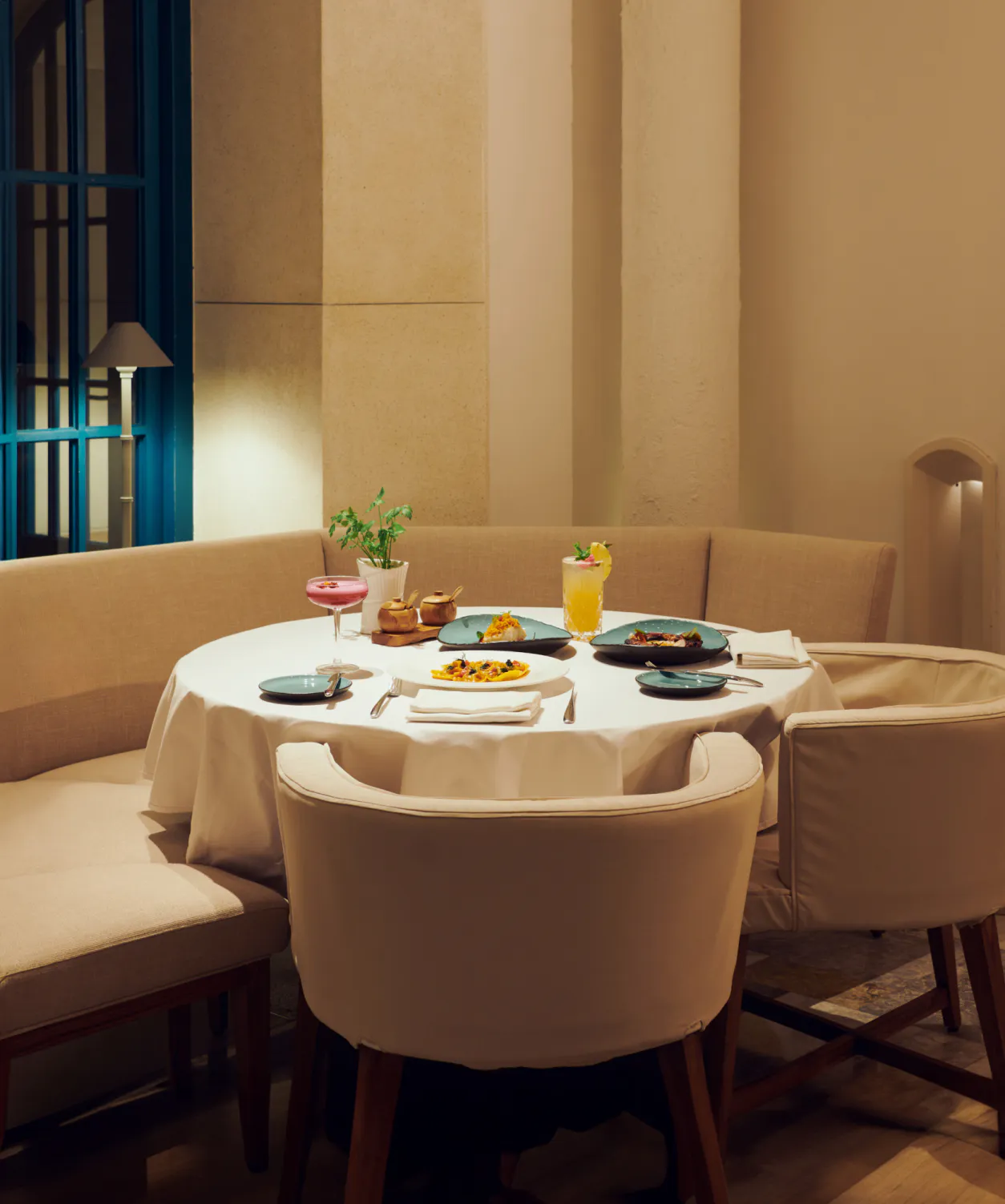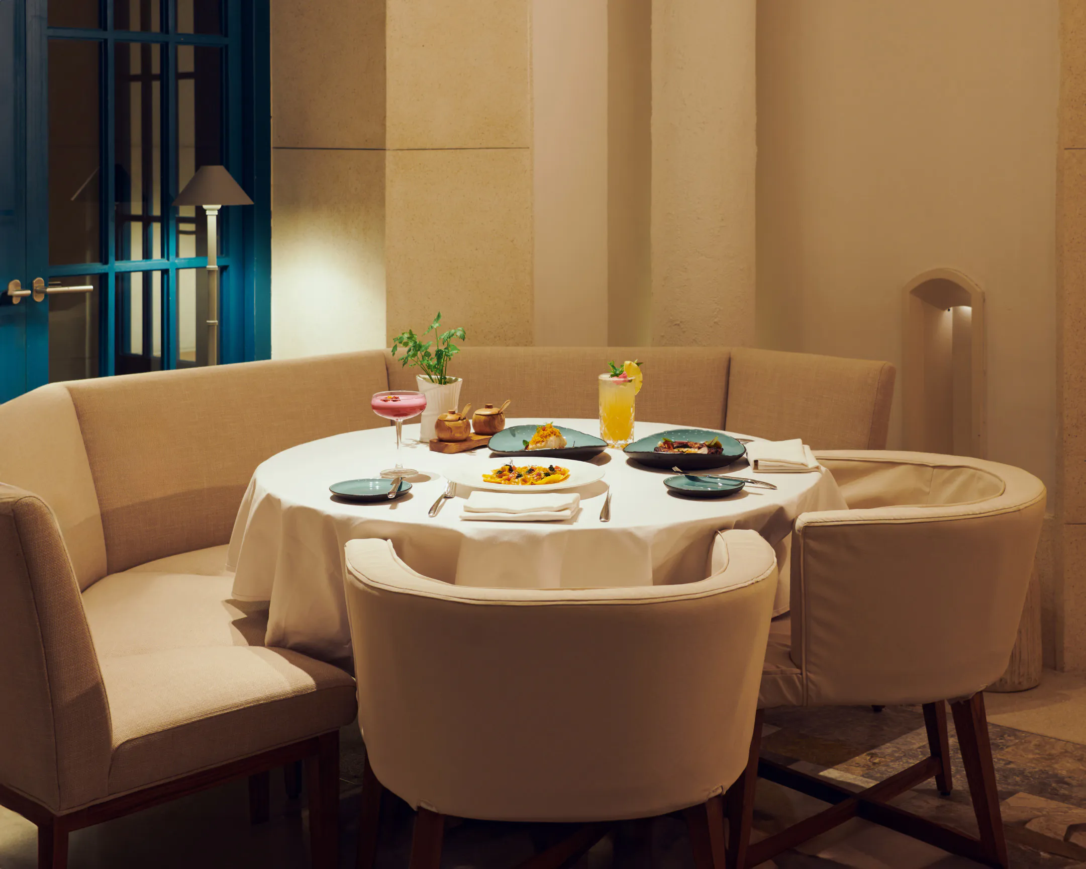 At Scusa, indulge in refined Mediterranean cuisine with sophisticated flavors and aromas in an interior adorned with white and blue accents, echoing the Aegean Sea. Alternatively, enjoy your meal on a breezy terrace.