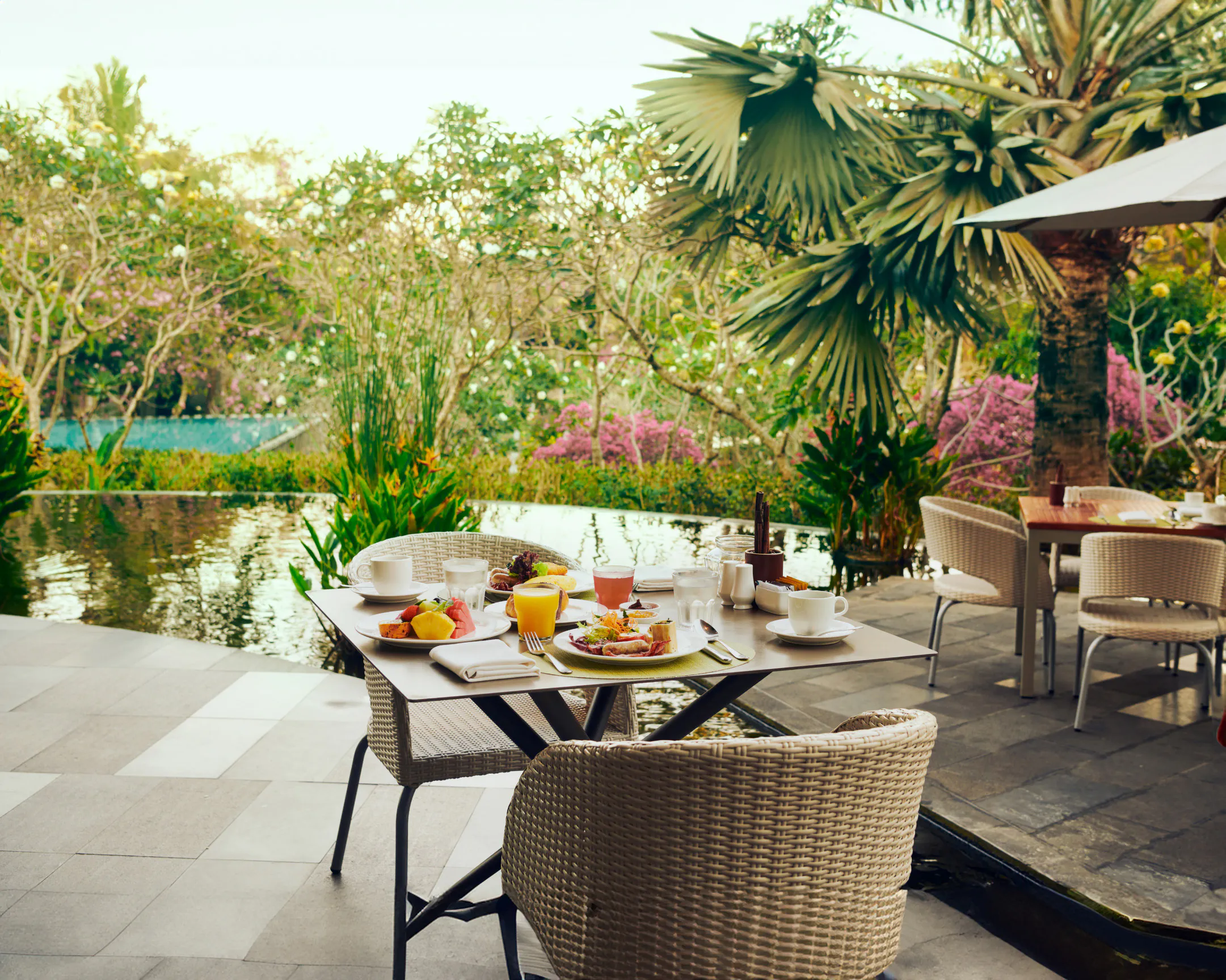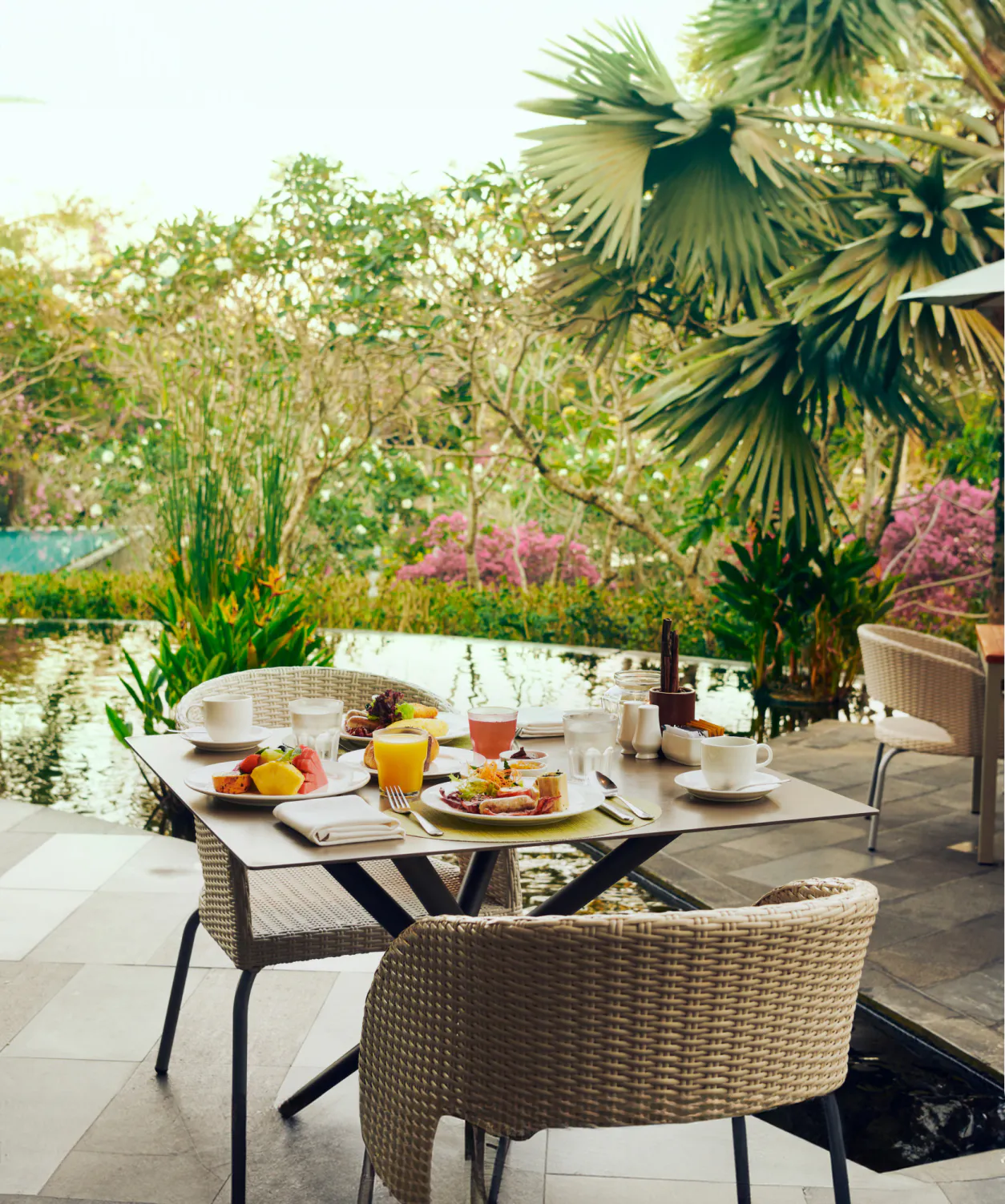 Surrounded by lush tropical gardens and a pond where koi swim gracefully among colorful lotus flowers, To'Ge is the liveliest restaurant within the resort. Here, you can enjoy a variety of international cuisines.
