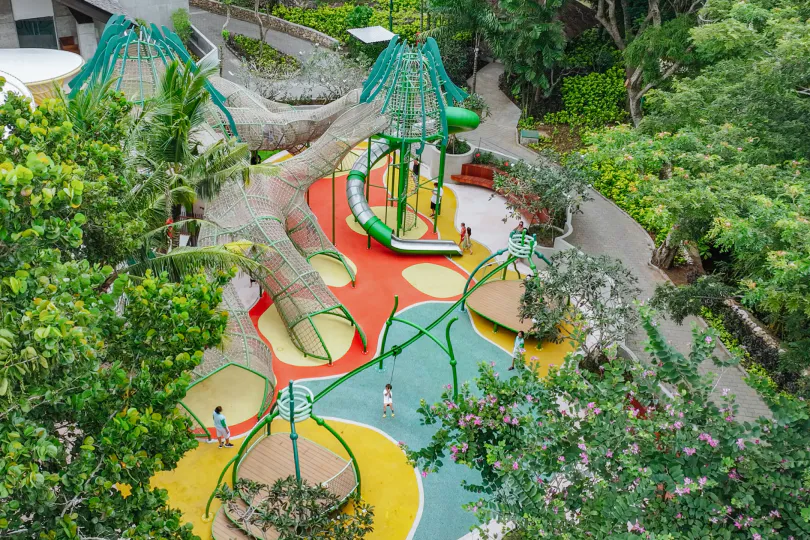Discover Bali’s largest resort kids' playground, a sprawling 1,600 sqm playground filled with adventure and imagination. Conveniently located along the path to Kampoeng Bali, next to the inviting Lower Pool, this vibrant space is designed to captivate both children and parents, offering a wondrous escape into a world of fun and exploration.