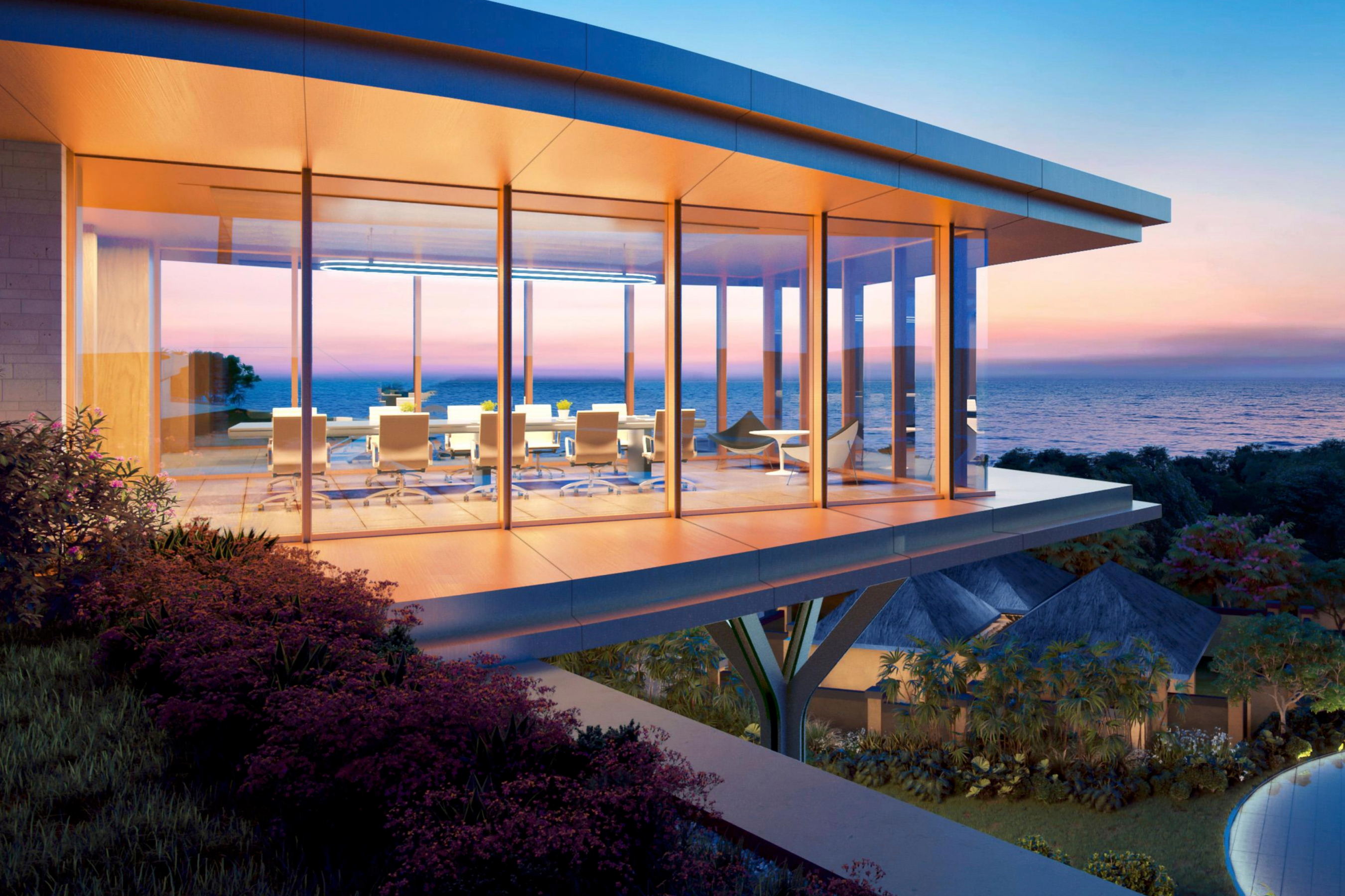 Glass-walled room with 270° ocean views