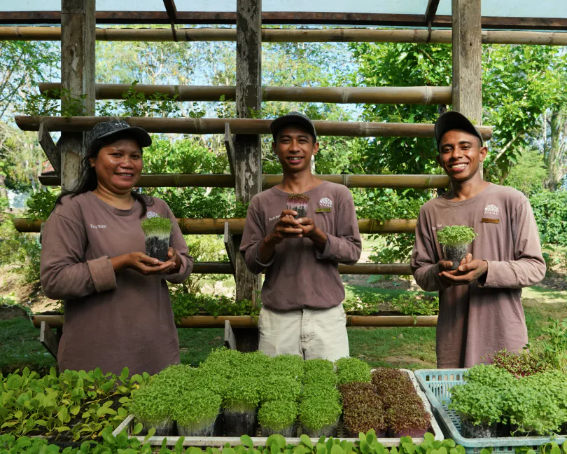 At the heart of AYANA Farm is our dedicated team of farmers, who play a crucial role in our operations. Many of our farmers come from Eastern Indonesia, including Flores, where AYANA Komodo is located. This initiative aims to empower local communities by providing skilled farmers with opportunities to enhance their expertise in sustainable practices while recognizing their traditional agricultural knowledge.