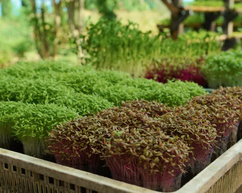 At AYANA Farm, we’re passionate about sustainable farming practices. We proudly cultivate these little greens in our plant nursery grown using natural methods, ensuring our microgreens are not only delicious but environmentally friendly. We focus on growing radish, beetroot, amaranth, cabbage, mustard greens, celery and basil, each bringing its unique flavors and textures to the table.