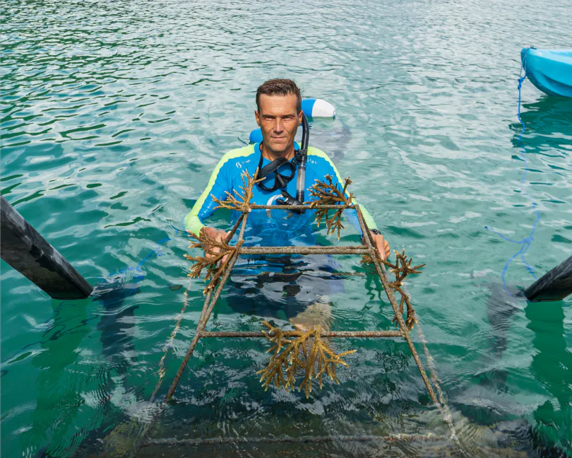 Led by marine biologist Lee Miles, AYANA’s Marine Discovery Center champions coral conservation through education, research, and community outreach.